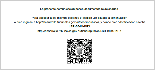 - En aquellos casos que la diligencia electrónica implique la impresión de documentación en formato papel en el marco de una notificación a domicilio real o similar, el Poder Judicial de Córdoba imprimirá un máximo de 4 carillas. Si el documento o sus adjuntos implican la necesidad de entregar al destinatario más de las carillas estipuladas anteriormente, el Poder Judicial de origen deberá disponer el acceso al documento original y a sus adjuntos en forma electrónica, mediante la incorporación en el documento de un código de acceso digital (QR, código de barras, link a una URL o similar) para la visualización de dicha documentación. La información para el acceso digital deberá ser incorporada al documento en el momento previo al envío del mismo por el BUS Federal de Justicia.