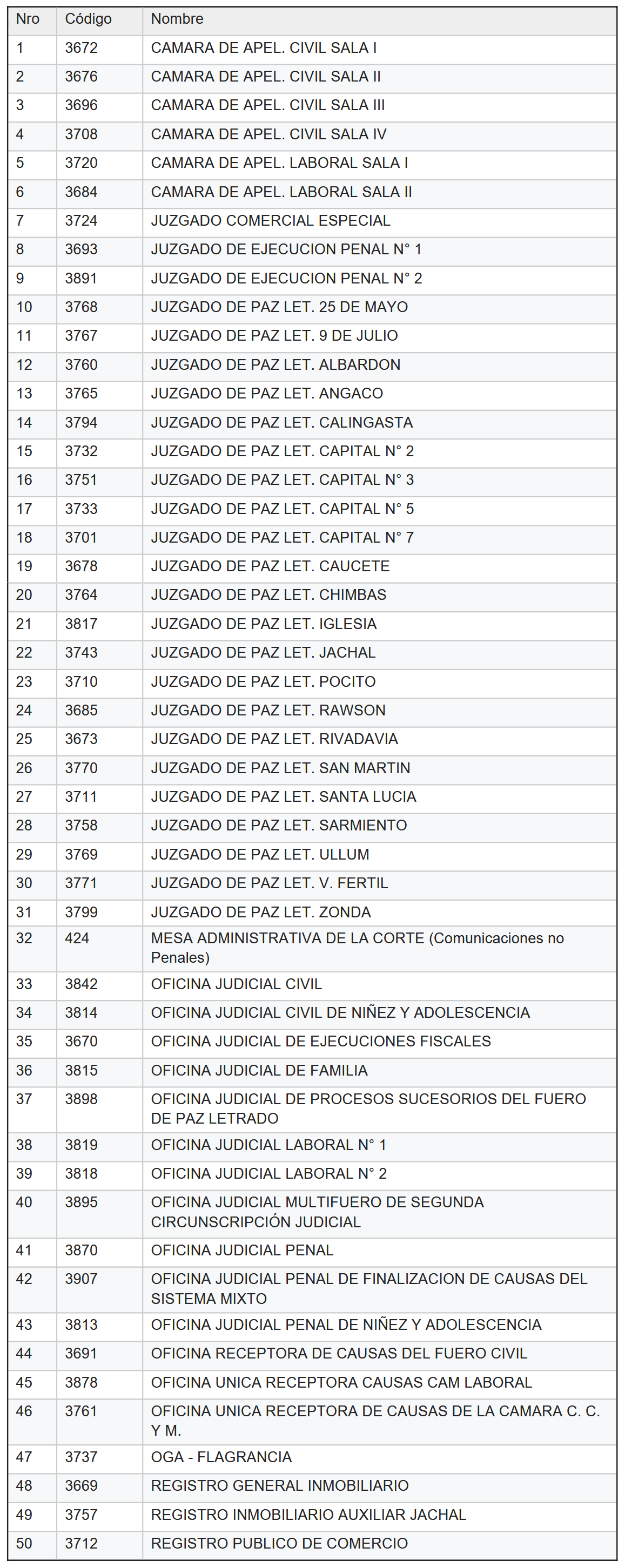 La Corte de Justicia de San Juan posee dependencias jurisdiccionales y dependencias administrativas que podrá ver desglosadas en la web oficial del Poder Judicial de la provincia: